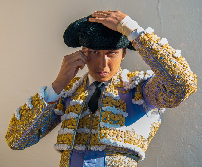 Isaac Fonseca liándose el capote de paseo